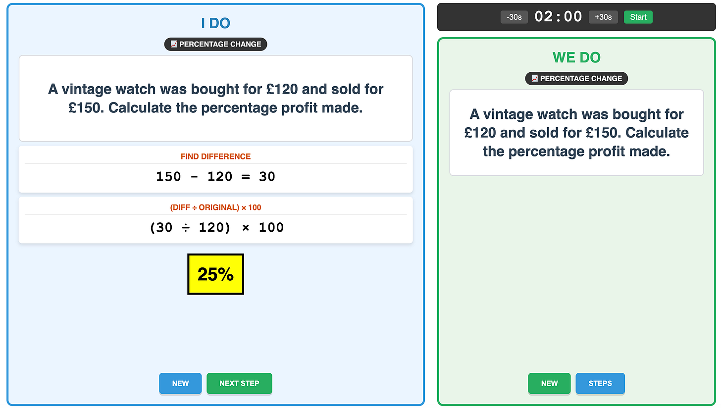 Steve Mander got in touch via email to say: I got more inspired after reading your latest post on AI. I have no experience whatsoever, but I decided to give it a go. I thought I would make a series of Do Nows with adjusted levels or steps for my foundation GCSE cohort. Enclosed is my effort on percentages.