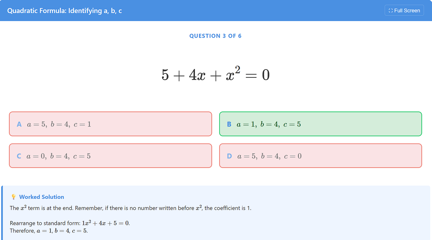 I have been trying to do things like this for the last two years, ever since I started messing about with ChatGPT, and the results have rarely been worth the effort. But Google’s Gemini 3.5 and, more recently, Claude’s Opus 4.6 have changed the game when it comes to maths resource creation. Now, ideas can become reality quickly. Indeed, if you ask for suggestions for improvement along the way, they can become better than the reality you had in mind.
