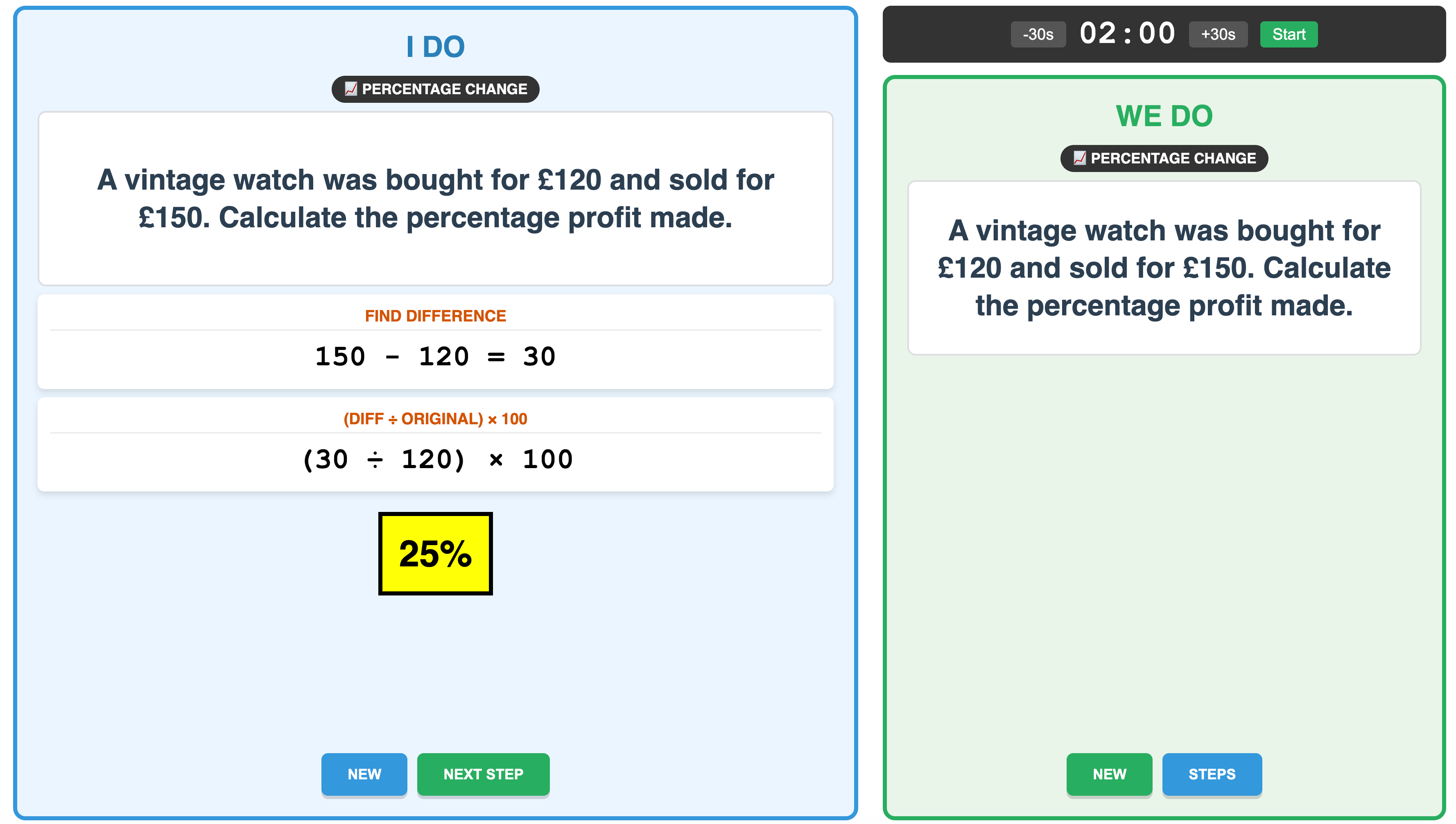 20 minutes later, we had versions of the same game for number bonds, rounding, negative numbers, and more (you can play them all here).